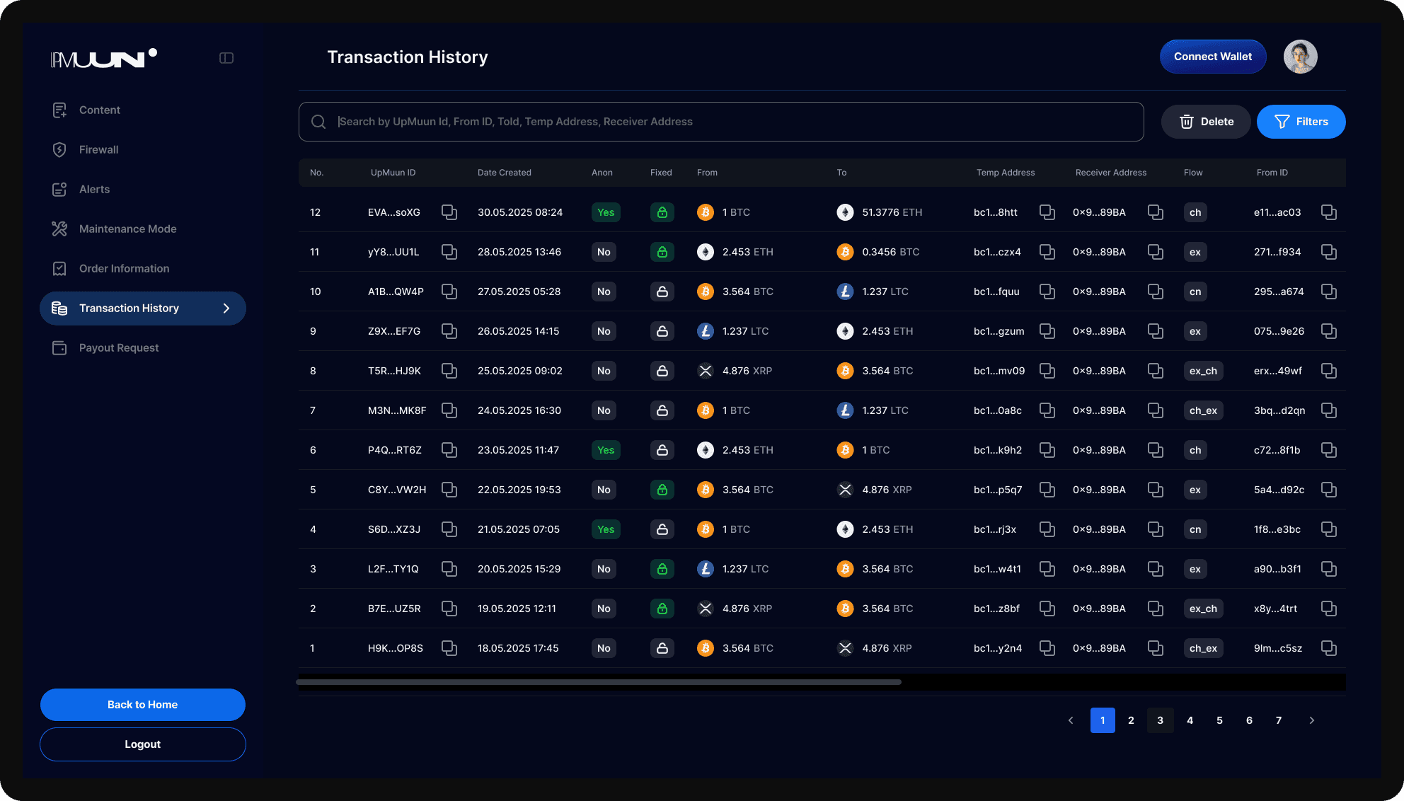 Once the swap tool was defined, I expanded the design system to support user and admin dashboards. These panels handle everything from transaction history to payout requests, built on a scalable grid system and consistent component library.