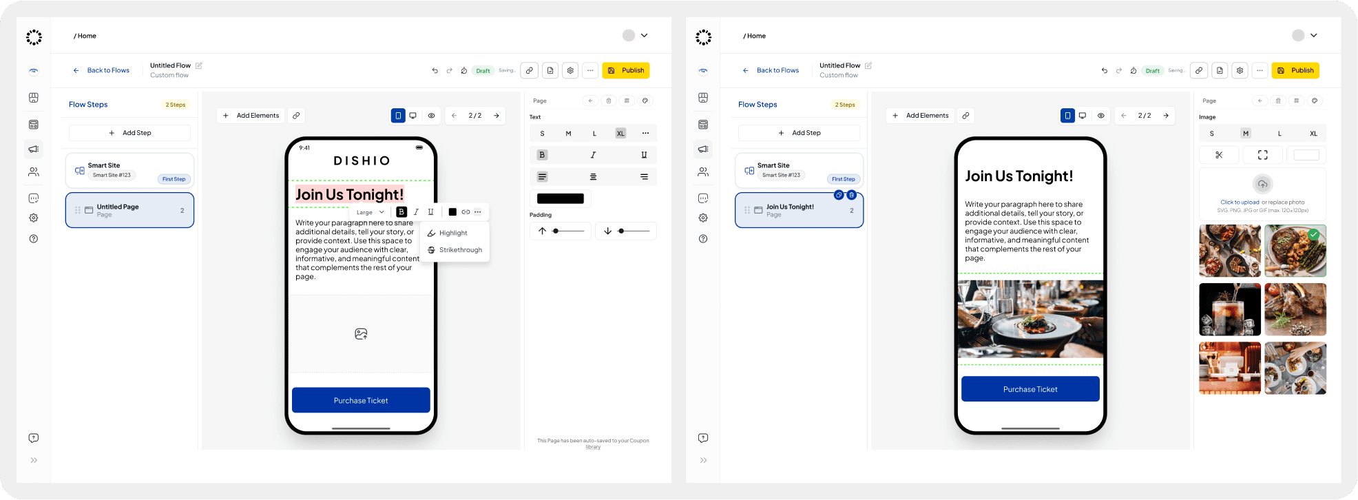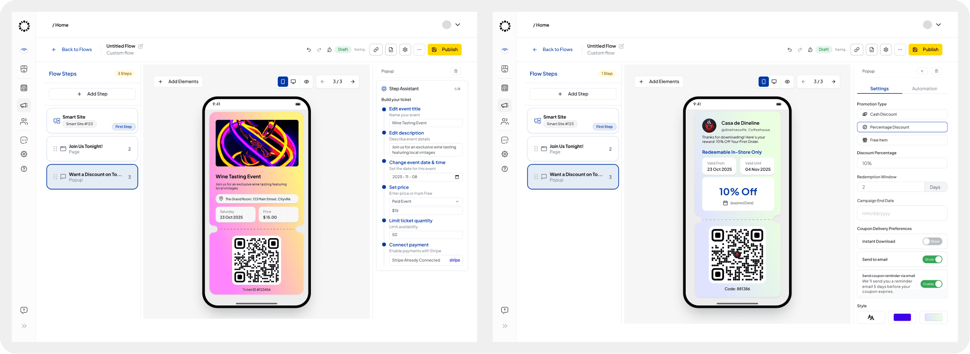 Flows was not an existing feature when I joined. It was a new concept designed to introduce automation and marketing-funnel capabilities to the platform. The goal was to help restaurant owners create powerful, automated journeys for their guests, such as event sign-ups, coupon redemptions, and special occasion offers, without needing marketing or technical expertise.