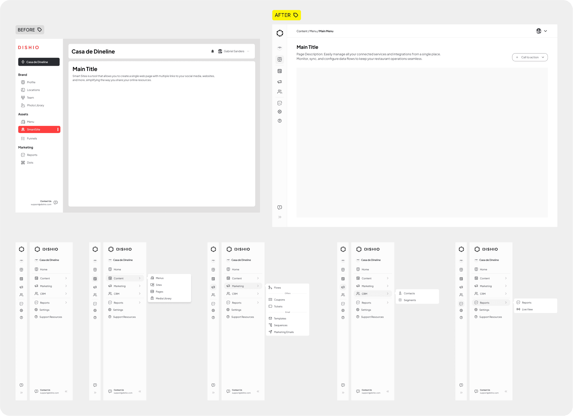 My responsibilities encompassed end-to-end UX and UI design for various complex modules, including Smart Sites, Flows, Integrations, and the core navigation system. The goal was to simplify operations, unify the design system, and integrate AI capabilities throughout the product, enabling restaurant owners to achieve more with less effort.