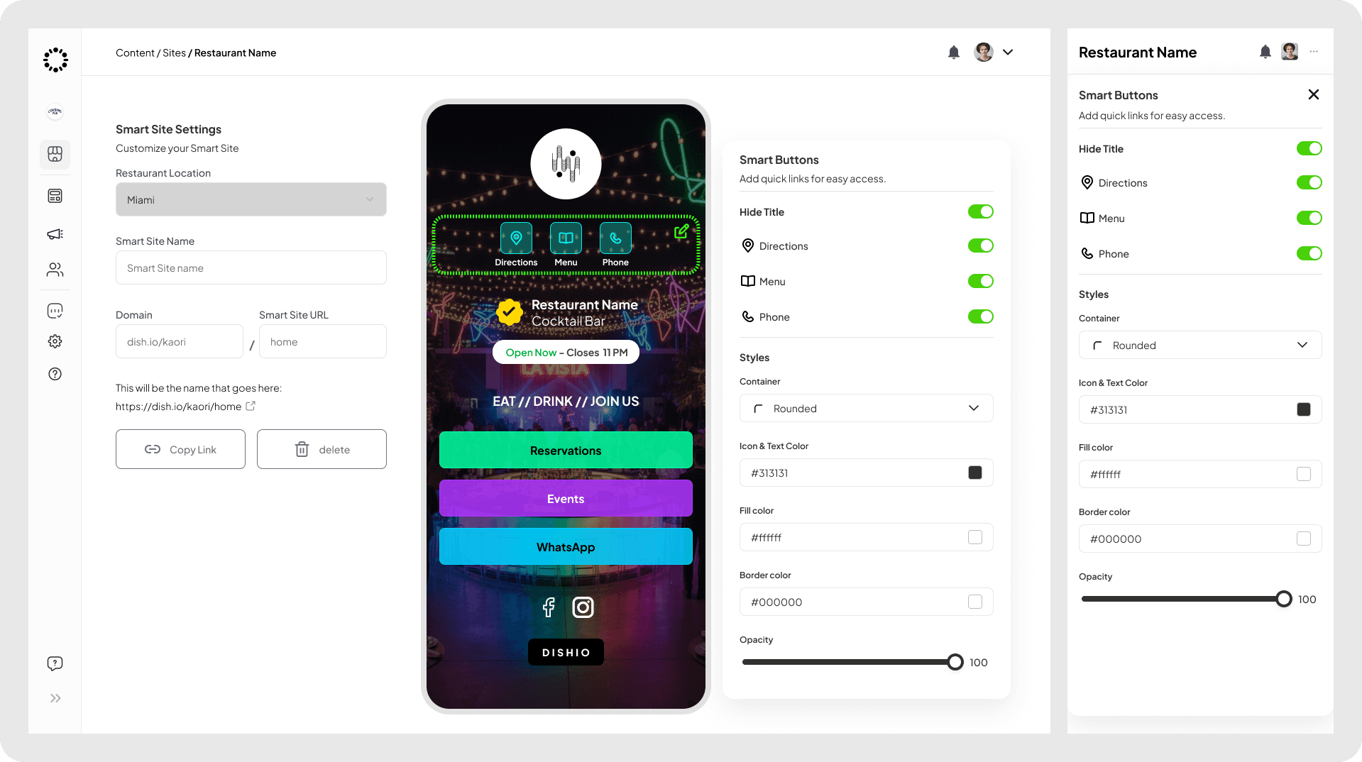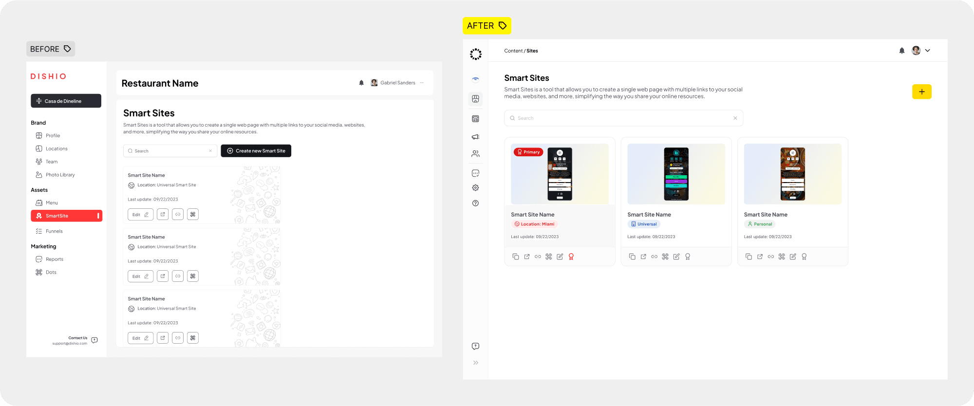 One of the most impactful projects I led was the Smart Sites module, a CMS that enables restaurants to create mobile-friendly microsites accessible via QR codes. The old version required manual editing across multiple tabs. I redesigned it around a live, mobile-first editing experience where everything can be clicked and edited directly in the preview.
