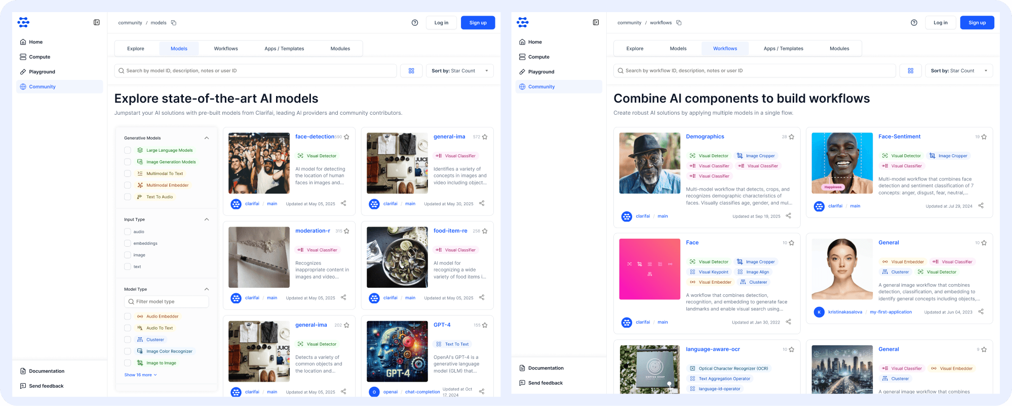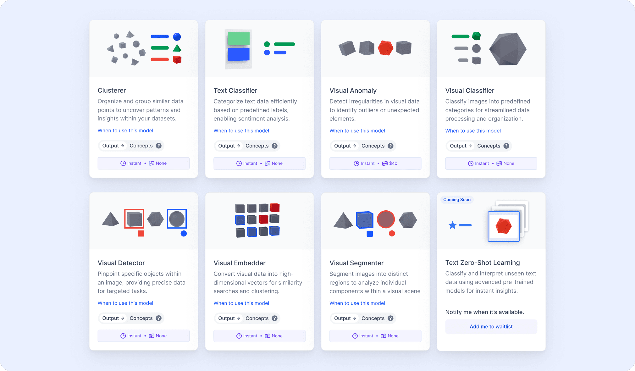 - Designed visual cards for model types like Classifiers, Detectors, Embedders, and Segmenters.