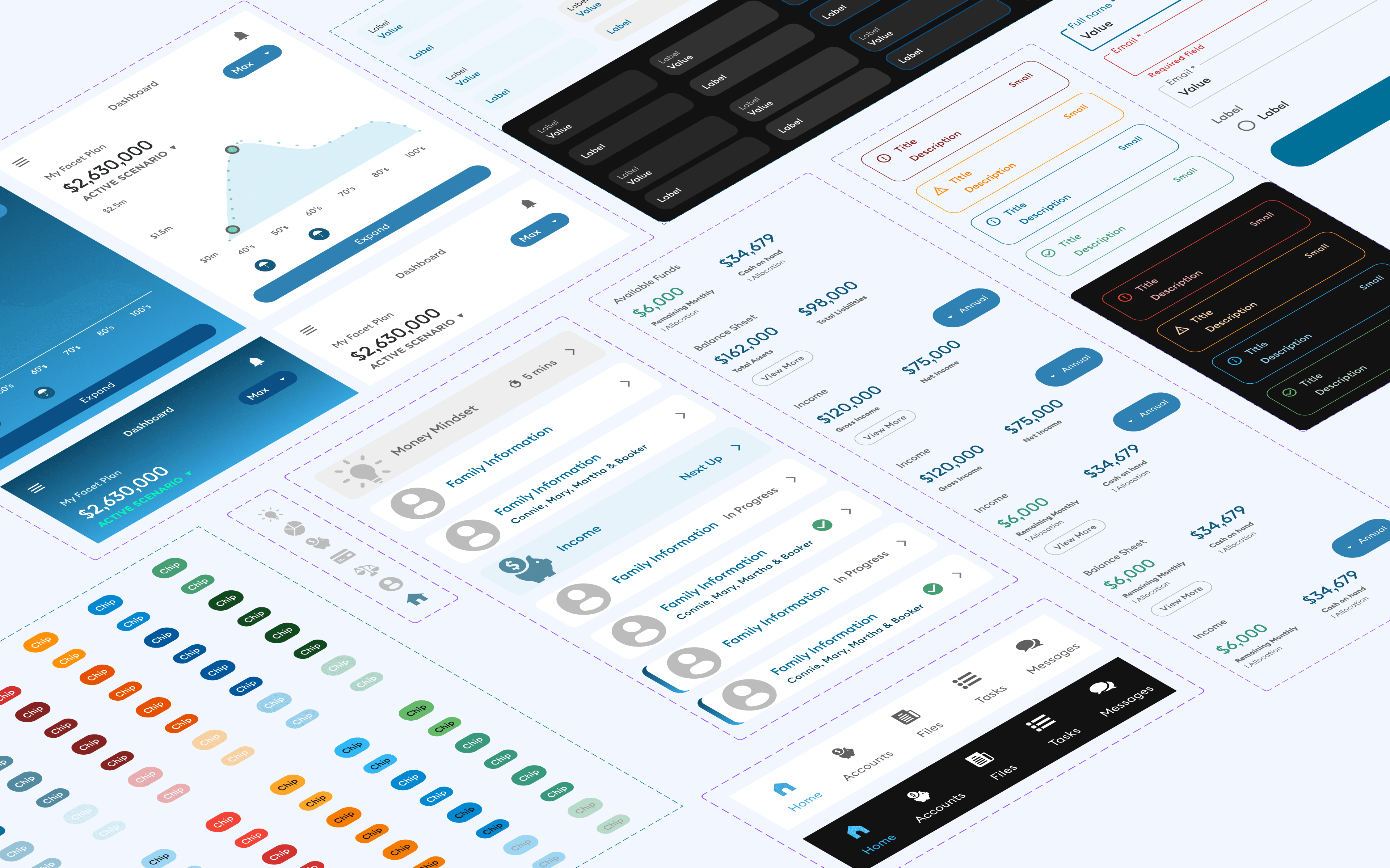 I created custom components and workflows tailored to each group's specific needs while maintaining a cohesive, intuitive user experience. The result was a design system that worked seamlessly across the entire platform, with a unified visual language and consistent user experience. The planners managed their clients more efficiently, while clients had access to a wide range of tools and features that made investing and saving for the future more accessible than ever.